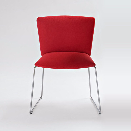 Vela系列共六種不同的椅型,搭配不同的椅腳,激盪出不同的質感,適用於不同的場所,此款為金屬線框椅型,新技術的發明,使椅腳能夠變得更細更利落,造型上更加的簡約,適合居家空間、大廳空間使用。